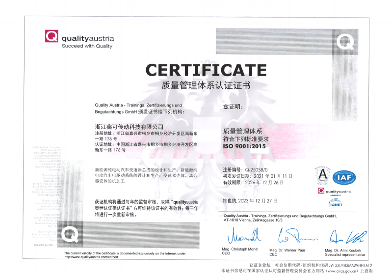 浙江鑫可傳動(dòng)科技有限公司坐落于浙江省桐鄉(xiāng)市高新東一路,占地面積153畝,總投資12.8億元,是“新能源一體化電驅(qū)動(dòng)總成數(shù)字生產(chǎn)線”基地,也是工信部2019年04重大科技專項(xiàng)課題項(xiàng)目主要研發(fā)單位。