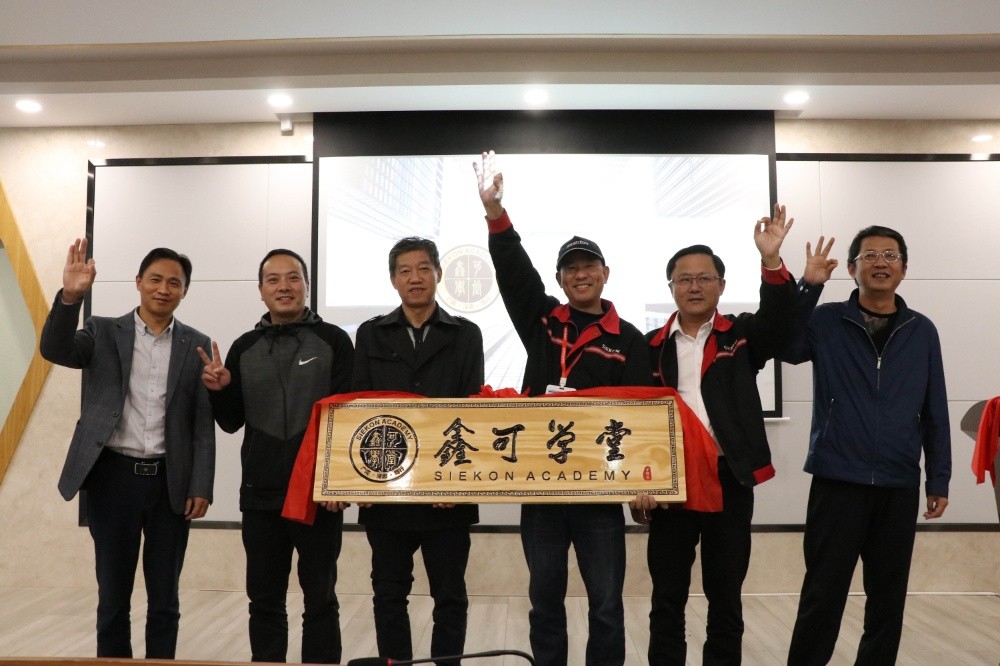 開學典禮最后,鑫可傳動領導共同舉起“鑫可學堂”牌匾并合影留念。