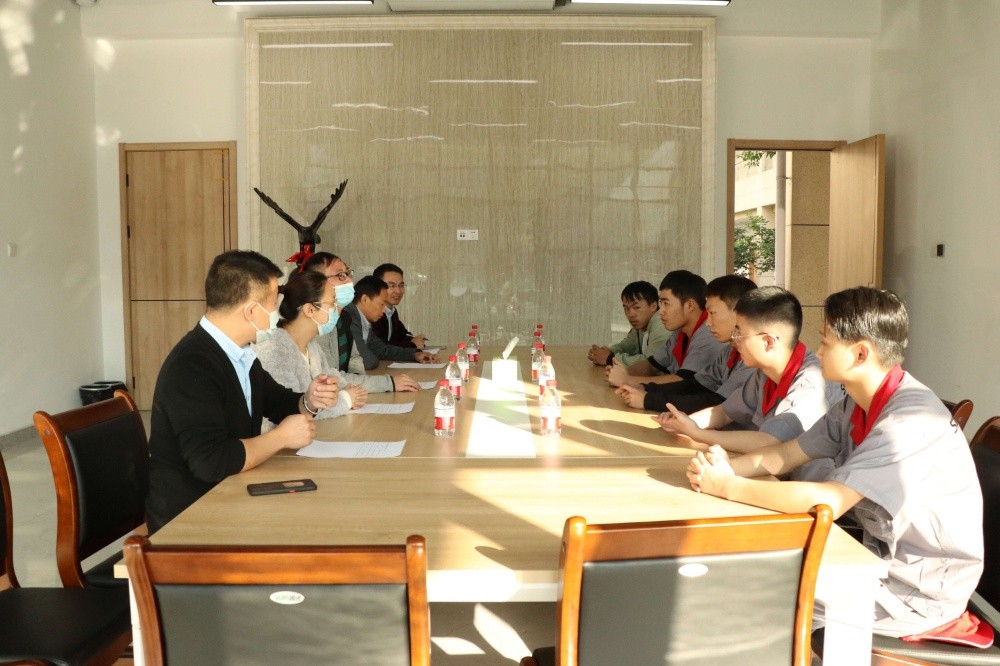 座談會伊始,陳光耀副總經理對老師們特來看望和慰問實習生表示熱烈歡迎,并向學校詳細介紹了學生們的實習培訓情況和生活情況。他說,兩個多月來,同學們努力好學、積極上進,已初步掌握了公司產品的生產過程、制造工藝和產品檢驗規則等多項技能。陳總寄語實習生,希望他們腳踏實地、不怕辛苦、主動學習,快速去適應崗位工作要求,把工作崗位當作最好的老師,多學習、多思考、多嘗試,成長的機會永遠是留給有準備的人。
